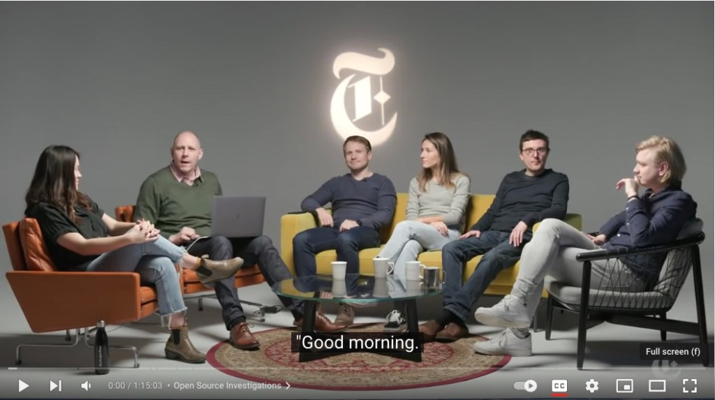 The NY Times offers some of the best and only Open Source reporting. Many of the tools they use to do this for forensic reconstruction I hope to cover at least in some depth through the core creative course.