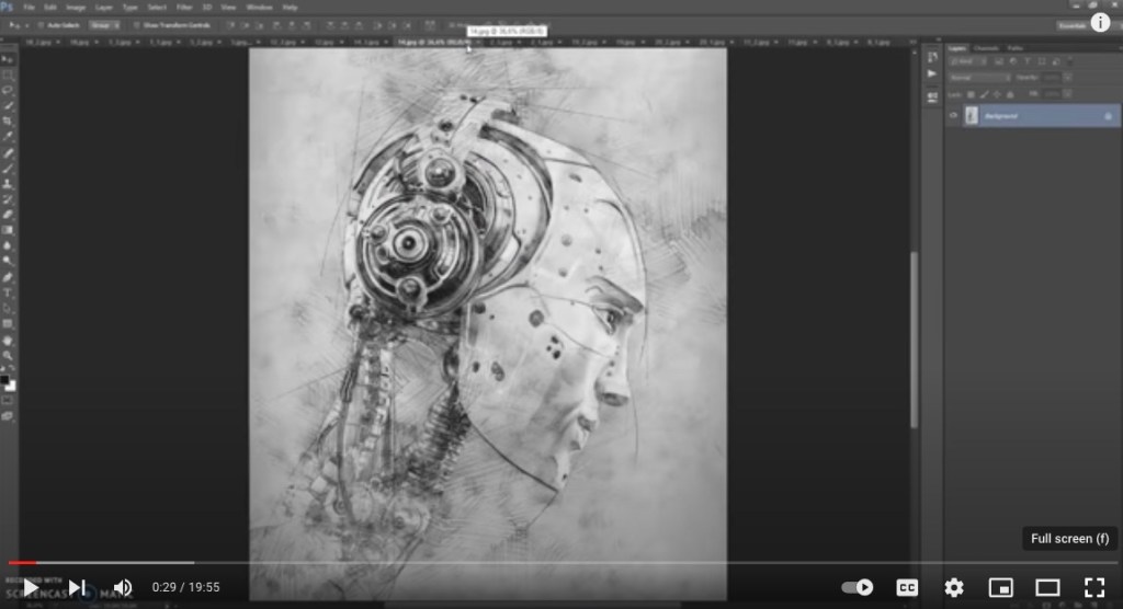 An alternative, below, which I think is the best solution for the project, will allow me to use any old 3D image, put through a new autosketch filtering process in Photoshop. The Photoshop sketch filters, the algorithm for which up until this one I’ve always found to be less than completely convincing, finally seems to be working.