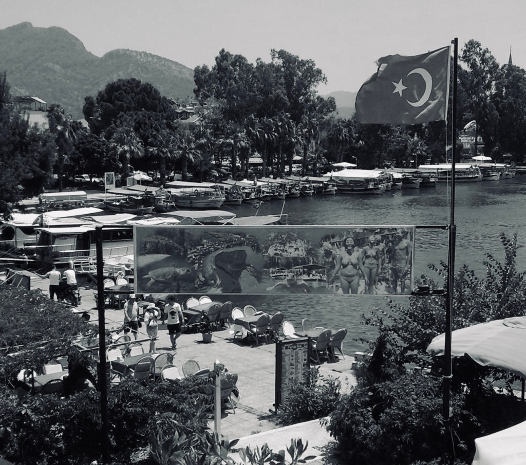 The next morning, I asked the concierge how to get to the beach, walked around the harbour and boarded a small boat waiting to fill up and take us down the estuary to Turtle Beach. There I struck up a conversation with another passenger who turned out to be a history professor, and the daughter of a former Turkish General. She was revisiting her homeland, Turkey, for the first time after many years and seemed both excited and a little nervous about the trip. It turned out that as a younger woman and active human rights protestor, she had long ago had to flee during one of the many violent military coups which shook the country between the 70s and 90s. She made her way as a political refugee to Sweden where she met a guy and got married, raiding a family in Sweden where she now taught history in a college.
