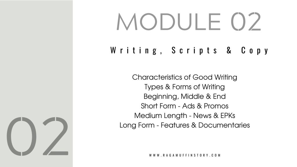 The assignment work comprises writing one quite simple short promotional voice script for the learner’s portfolio, as well as a second script for a longer piece of News or documentary EPK (Electronic Press Kit) on a subject of the learners choosing. The scripts will later be used to turn into 1. a simple promotional film and 2. A medium form mini documentary, with footage sourced or shot, logged and edited into a form which media news in-desks are used to receiving material. I.e, with accompanying material for local news stations to customise as reports by their own on-air journalists.